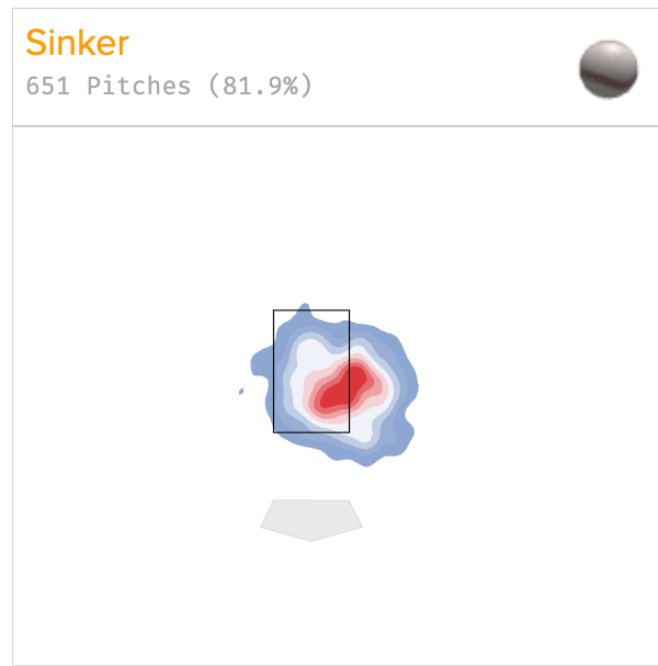 Hill throws the pitch just over 80% of the time, and mostly on the inside part of the plate, giving left handed hitters close to no chance to put a good swing on it.